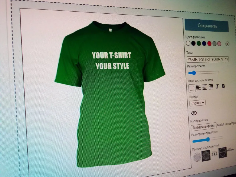 Выбор цвета футболки из предложенных вариантов или любого - из палитры цветов;