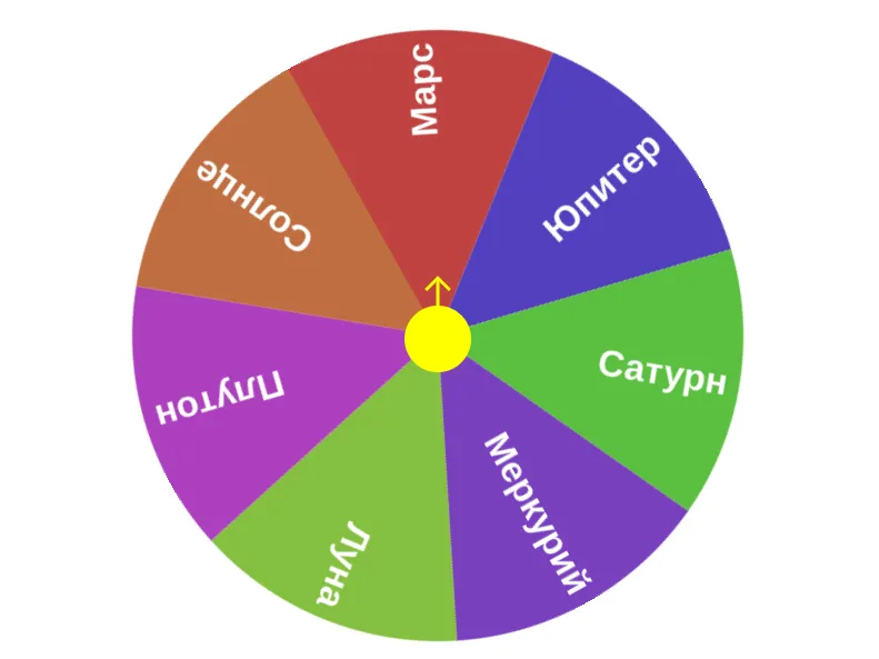 ➤ Сектор остаётся на колесе после остановки — вы видите куда указывает стрелка.