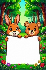 Перед вами несколько шаблонов с персонажами - забавные животные, которые держат в лапах баннер для текста.