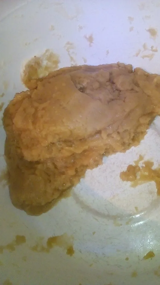 и 0,5 стакана жженного сахара (сахар высыпать в металлическую посуду, держать на слабом огне пока он не растает и получившаяся жидкая масса не станет тёмно-коричневой, затем залить массу 1/3 стакана воды, чтобы получился сироп, который можно будет влить в общую массу для теста).