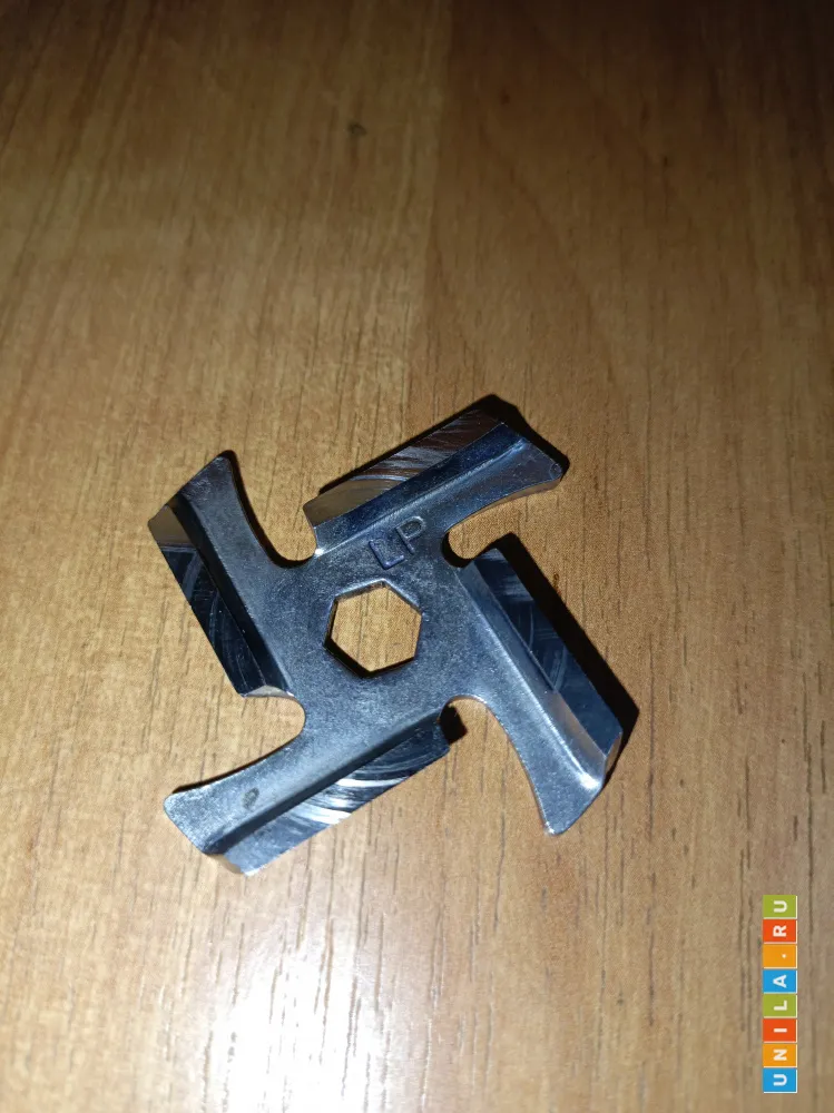 Этот нож для мясорубки хорошо не режет косточки, они успевают проскочить сквозь решетку