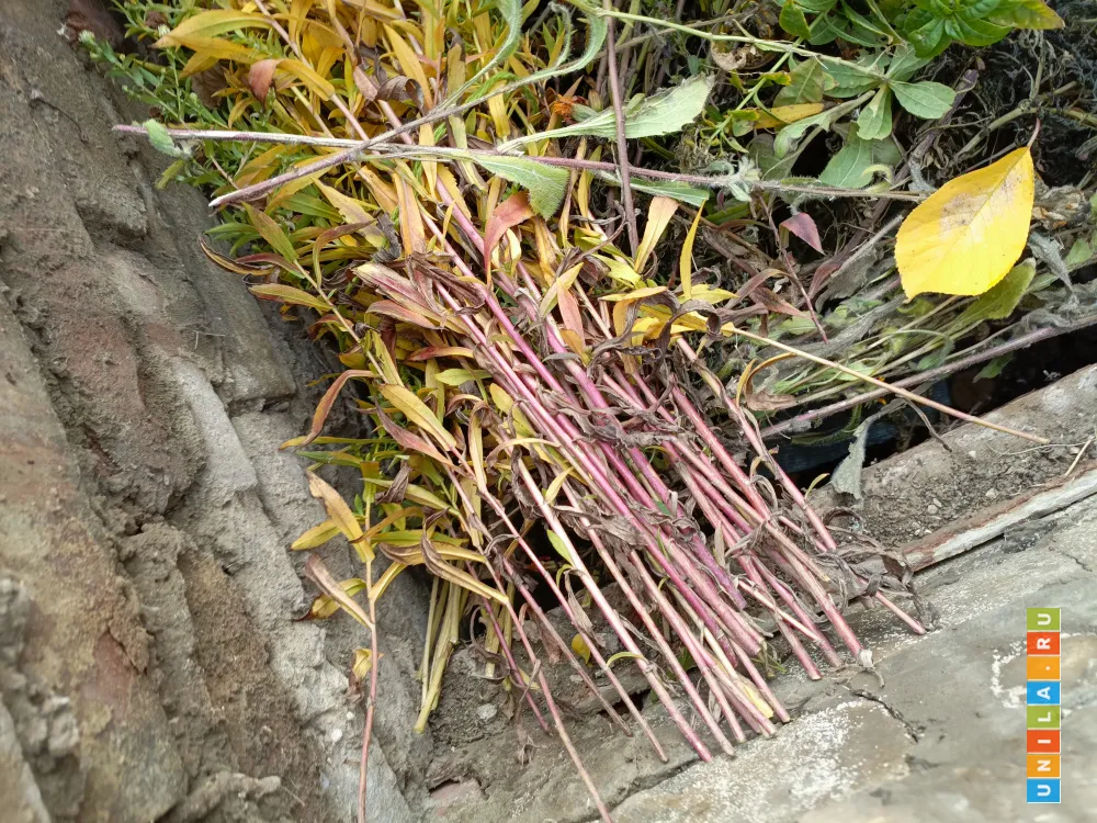 А этот куст хризантемы ещё цветет и держится. Пока пусть стоит. Позже использую для утепления ямы
