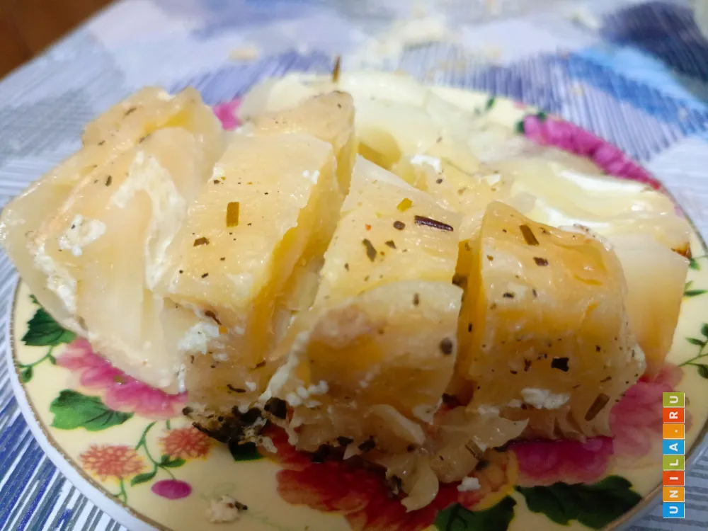 Запёк в духовке белокочанную капусту со специями, так называемые – стейки из капусты. Только я нарезал её не тонкими плоскими стейками, а крупными кусками (на фото).