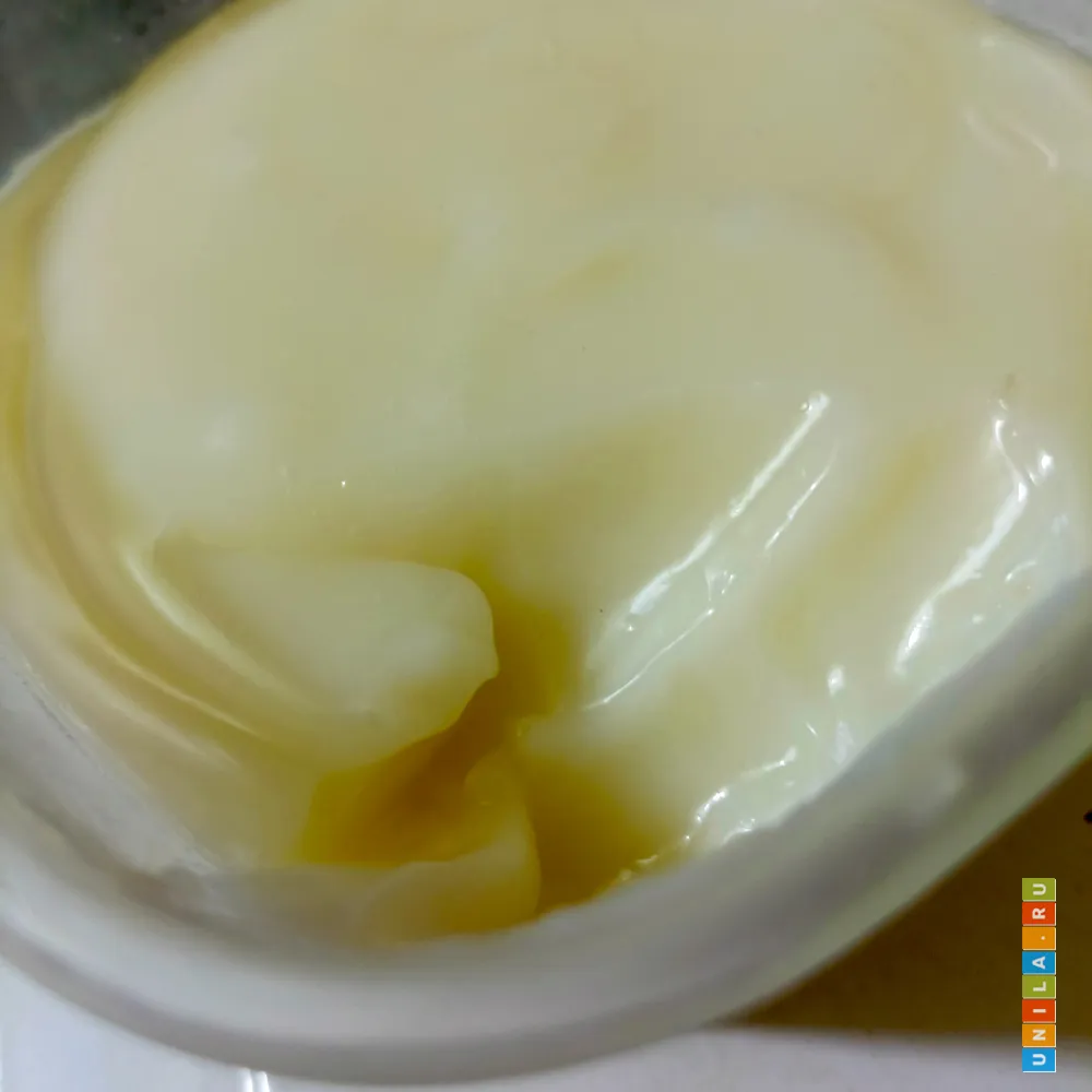 Белый крем после морозильника, не замёрз, но консистенция улучшилась