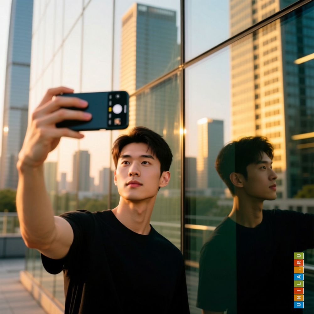 Картинка для иллюстрации «человек делает селфи», сгенерировано нейросетью