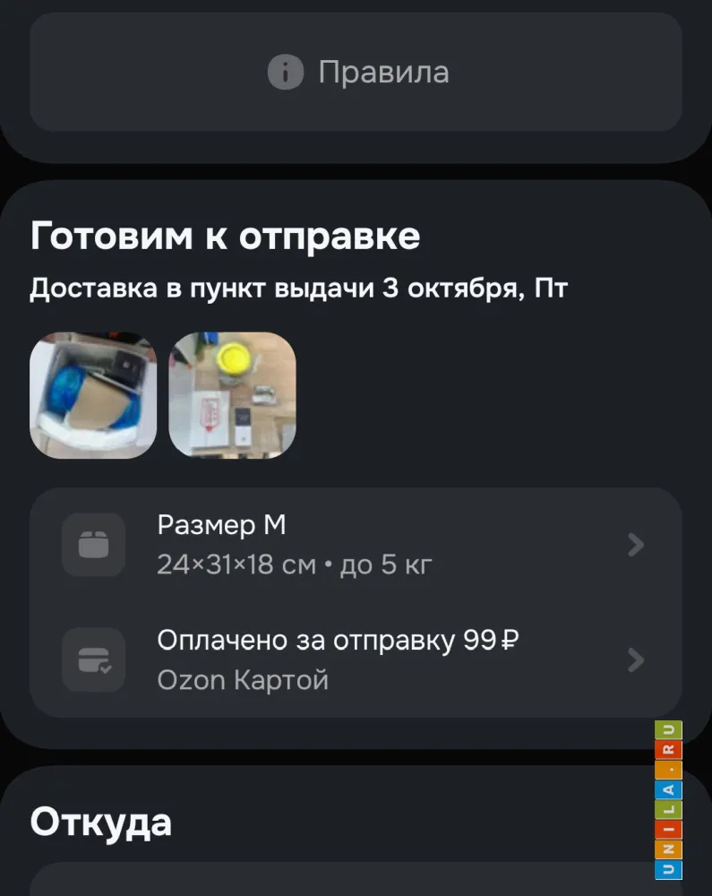 Кстати, при создании заявки нужно в ручную указывать свой населенный пункт. Мы привыкли, что при заказе товаров на Озоне, он помнит наш адрес и не указываем его каждый раз. Я сначала исходил из того, что приложение знает мою локацию и указал только адрес ПВЗ получателя. Получилось, что я на автомате создал заявку на отправку посылки из Москвы, хотя я не в Москве. Пришлось отменить заявку и создать новую.