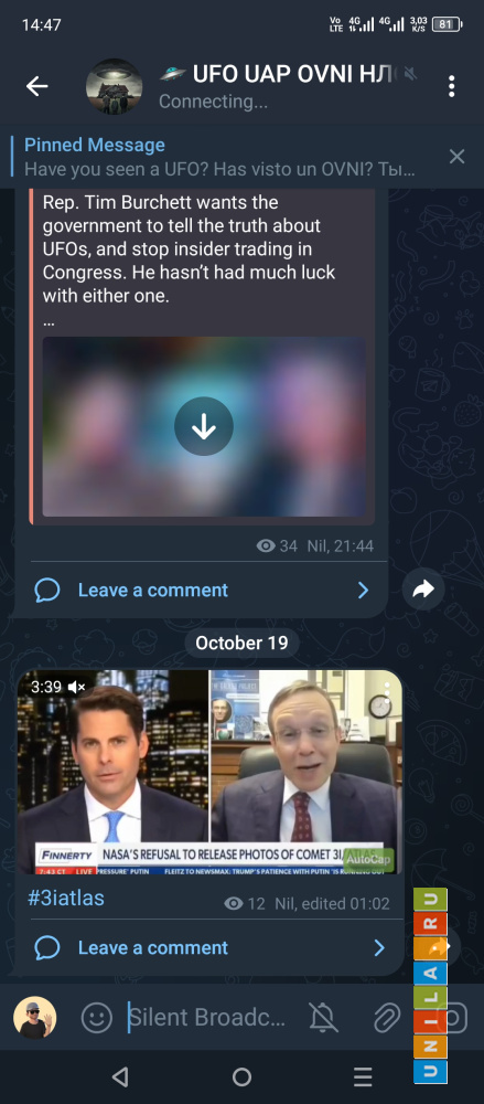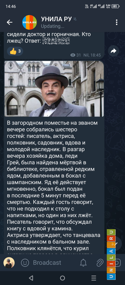 Скриншот из приложения. На канале постоянно идёт обновление списка