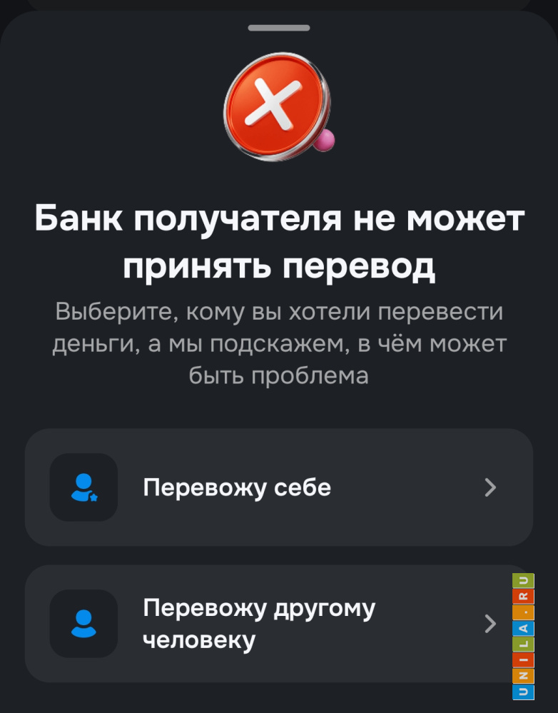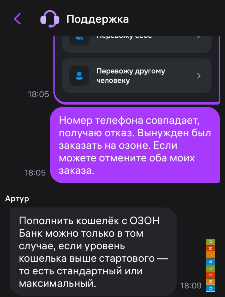 При попытке перекинуть с карты Озон на кошелек ВБ отказ
