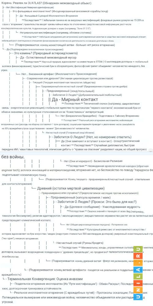 Попалось такое в зарубежных социальных сетях. Не знаю, кто составил. Карта, дерево вариантов. Несколько ветвей: если это комета, если это фейк, если это инопланетяне. И в каждой ветке свои варианты.