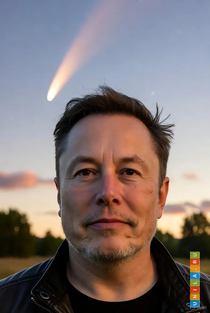 Илон Маск на фоне кометы. Изображение сгенерировано нейросетью