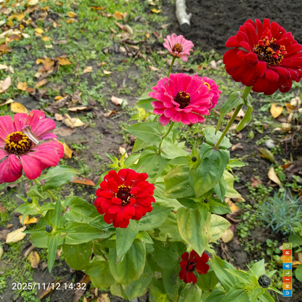 Середина осени. Так как морозов на юге ещё не было, осенние цветы астры, хризантемы, георгины и даже цинии всё ещё цветут. В этом году меньше, чем раньше, но кое что есть.