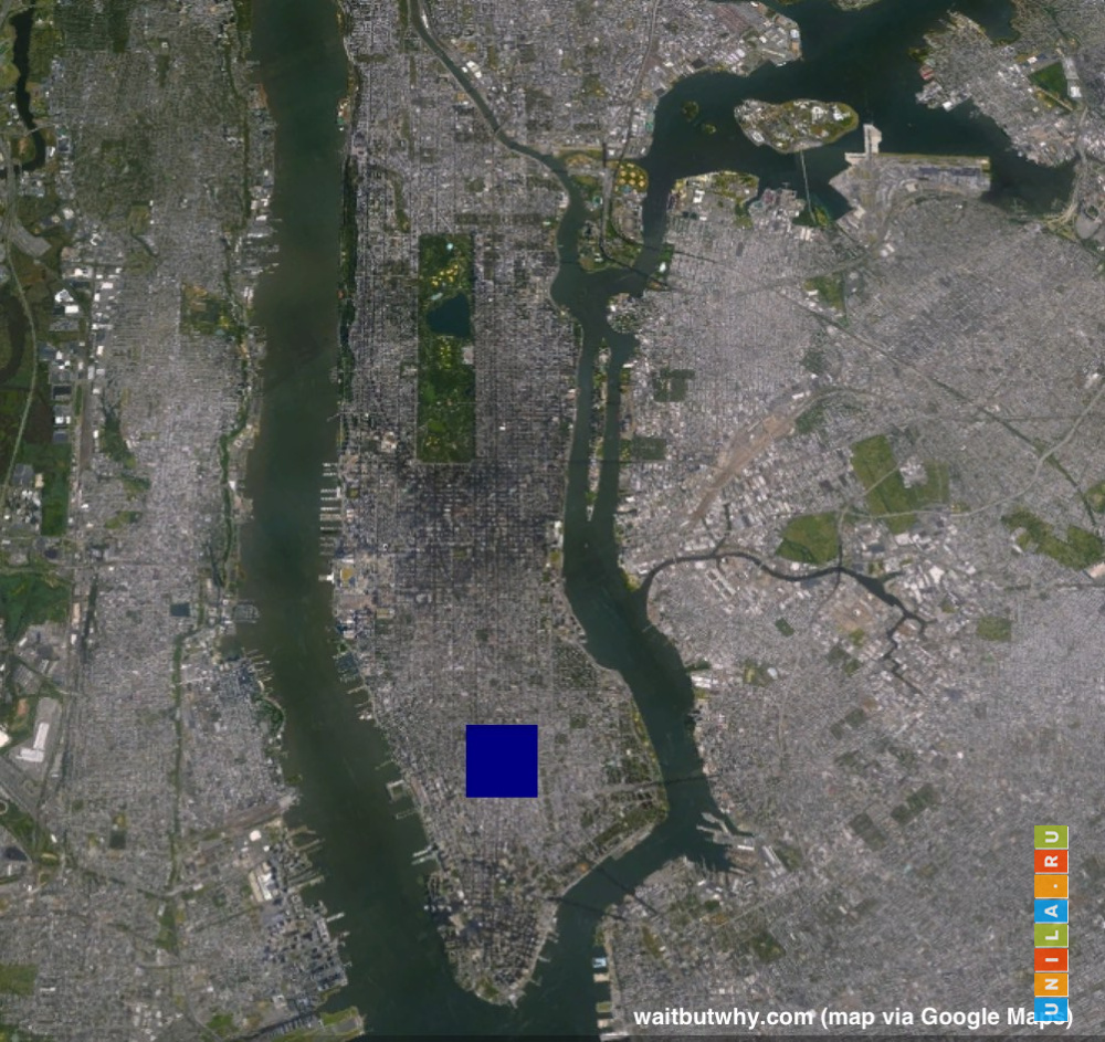 Попалось интересное. Оказывается, Киото подсчитал. Если всё население мира собрать вместе, то оно могло бы поместиться в куб с размером сторон 1 километр, который можно разместить в пределах одного квартала большого мегаполиса. В примере речь идёт о Нью-Йорке и Манхеттене, но не принципиально. Понятно, что таких огромных зданий не существуют. Но в принципе этот воображаемый пример хорошо показывает, что слухи о перенаселении земли очень преувеличены.