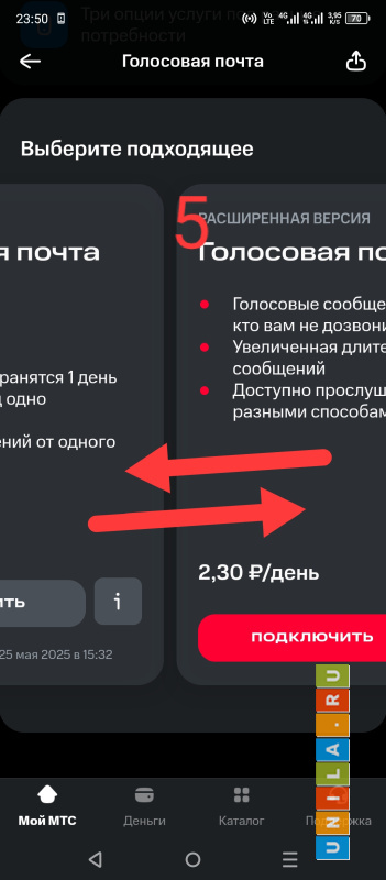Если нужны другие варианты голосовой почты, листайте экран справа налево