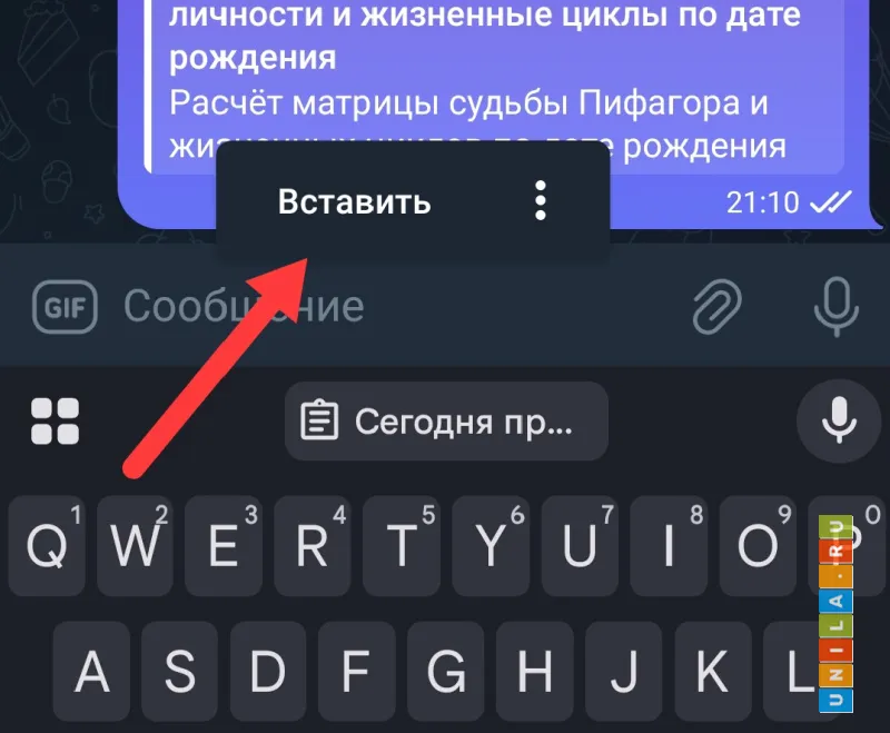 Удерживайте палец на форме для ввода сообщения. Когда появится кнопка «Вставить», нажмите на неё