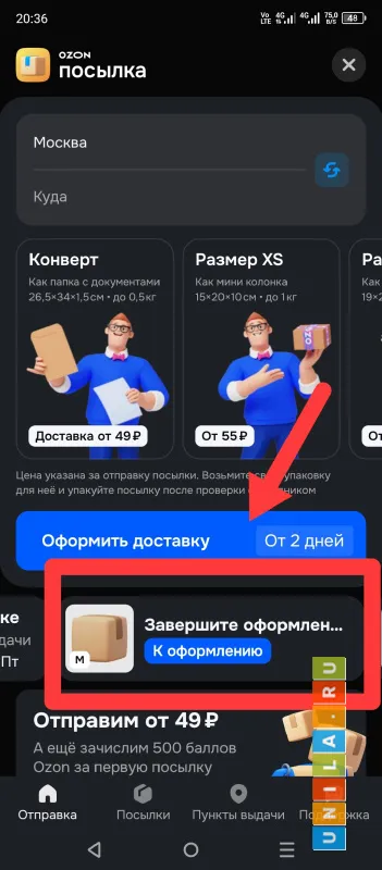 Первый раз отправлял посылку через Озон и получилось сразу 3 незавершённых черновика посылки. Они так и висели в списке с предложением завершить заявку. Долго не мог найти, как из отменить, показываю как это сделать