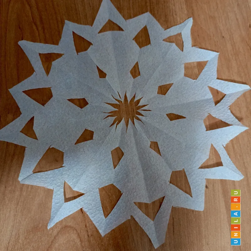 Такими снежинками украшают окна или другие элементы интерьера к новому году.