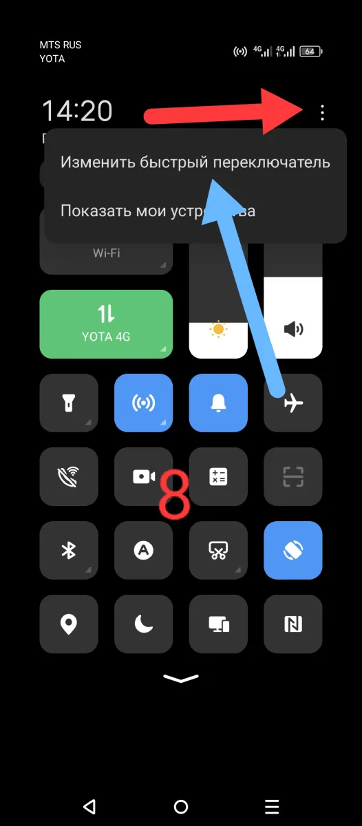 Переияните кнопку с точкой доступа из нижнего списка в верхний. Теперь можно включать и выключать точку доступа в пару касаний как в пункте 2