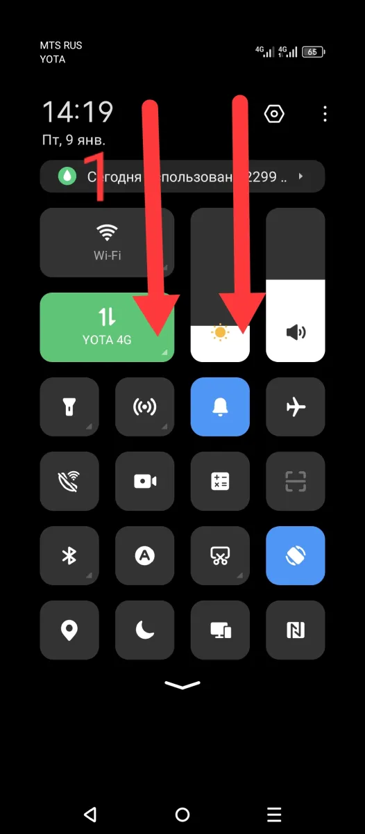 На главном экране смартфона проведите от самого верха вниз, чтобы раскрыть шторку с такими кнопками