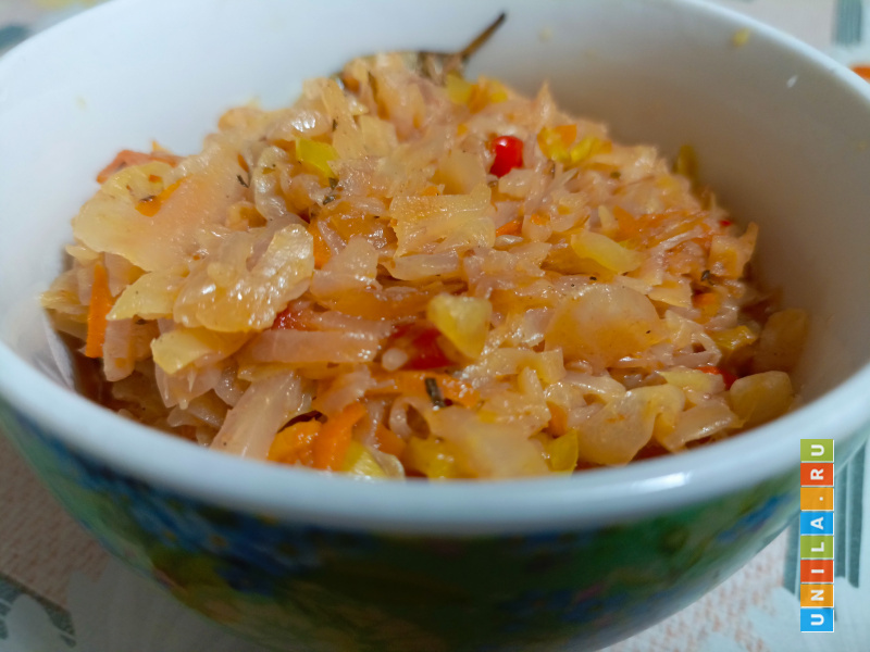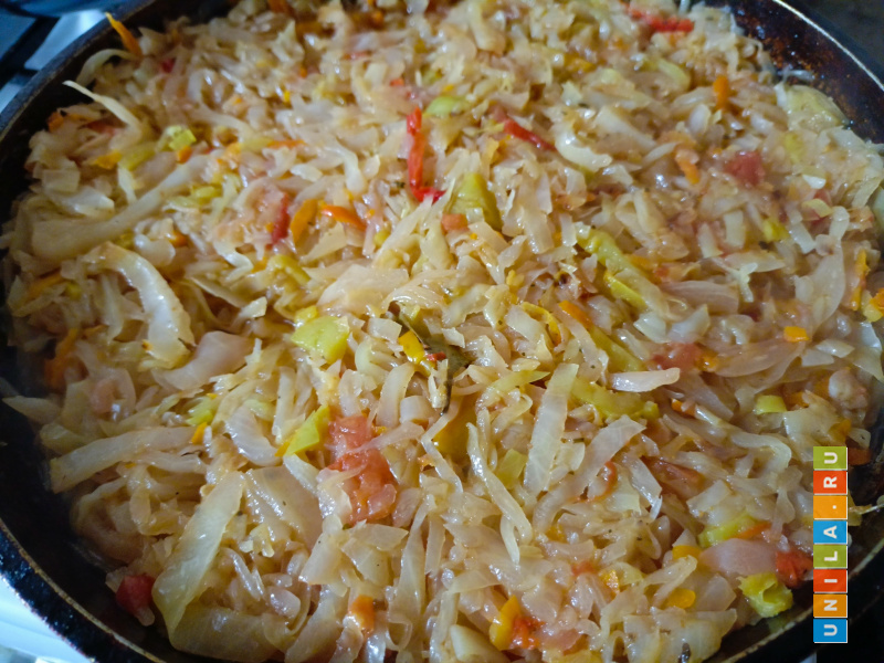 Капуста готова. Если на дне образовалось много сока, переложите капусту в другую посуду, оставив сок и масло в сковороде