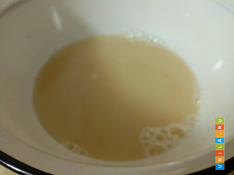 В большую чашку налейте 400 мл воды, вылейте дрожжи