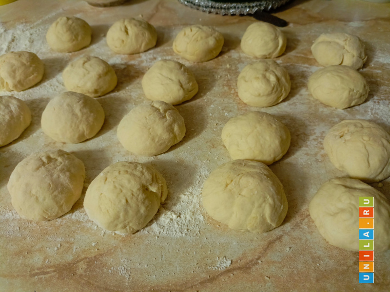 Получается 1400 гр теста. Это 20 пирожков в духовке (по 70 гр теста на пирожок) или 28 пирожков на сковороде (по 50 гр)