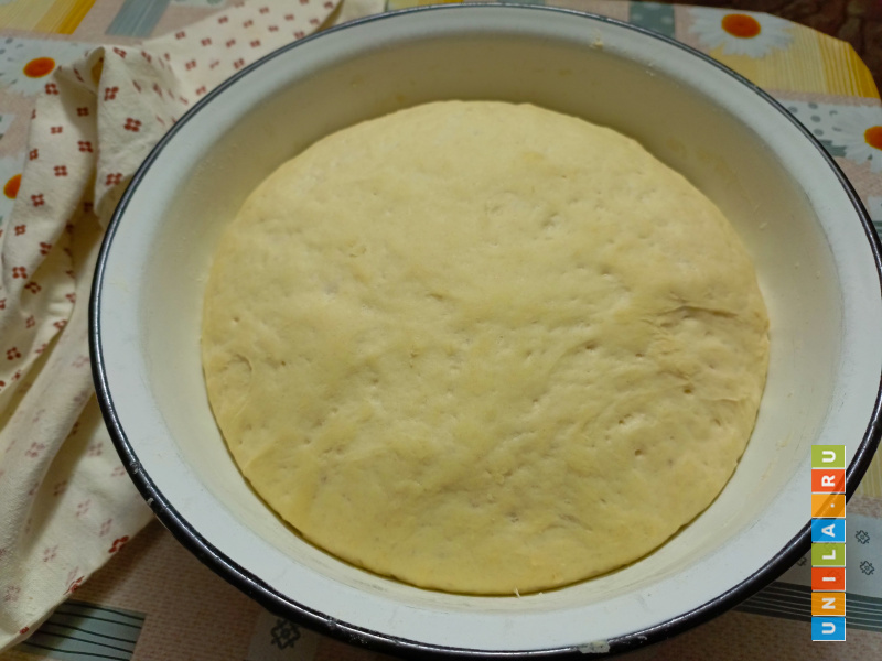 Накройте миску с тестом плёнкой, или чистым полотенцем или крышкой и оставьте в тёплом месте на два часа