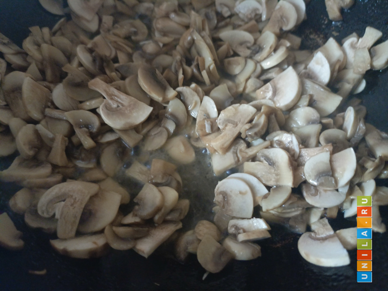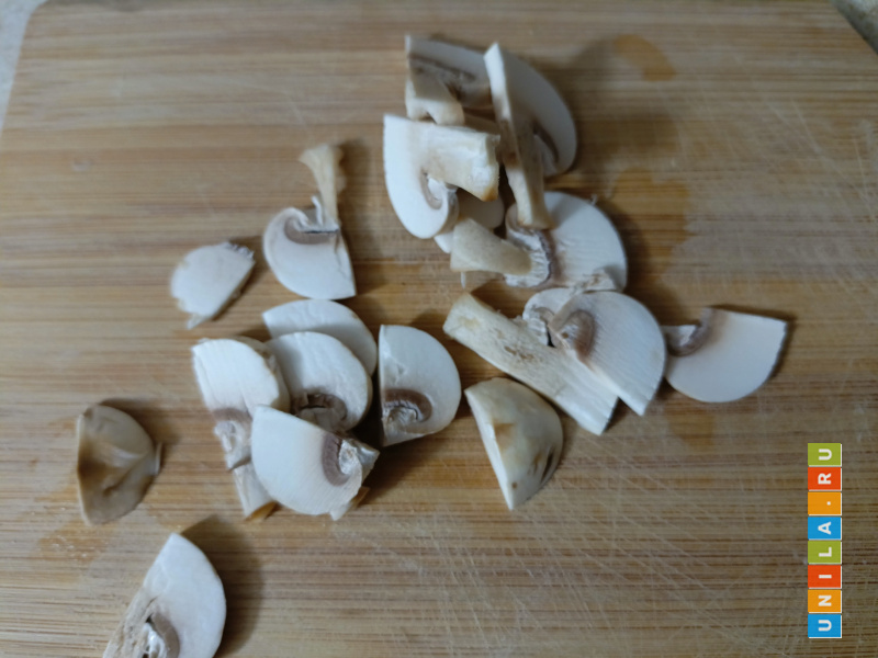 250 гр грибов нарезать тонкими кусочками