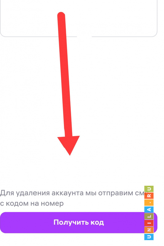 Укажите причину удаления и нажмите на кнопку, чтобы получить смс код для подтверждения удаления аккаунта