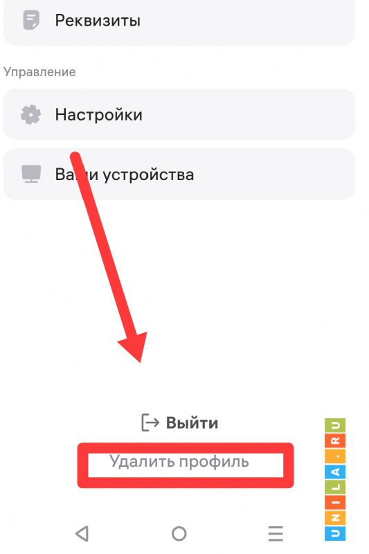 Прокрутить страницу вниз, чтобы найти кнопку удаления профиля