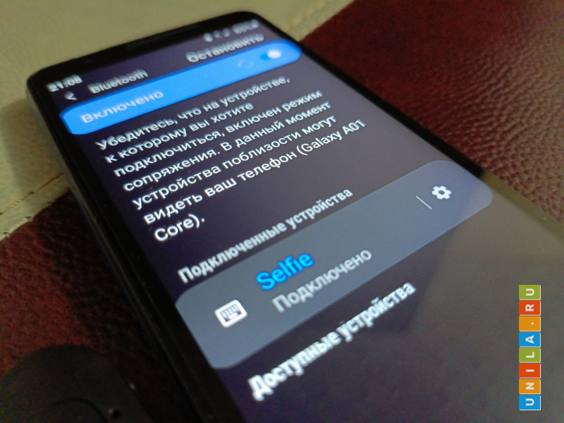 Когда пульт включился, откройте настройки блютуз на смартфоне и найдите новое устройство. Например Selfie. Подключитесь к нему