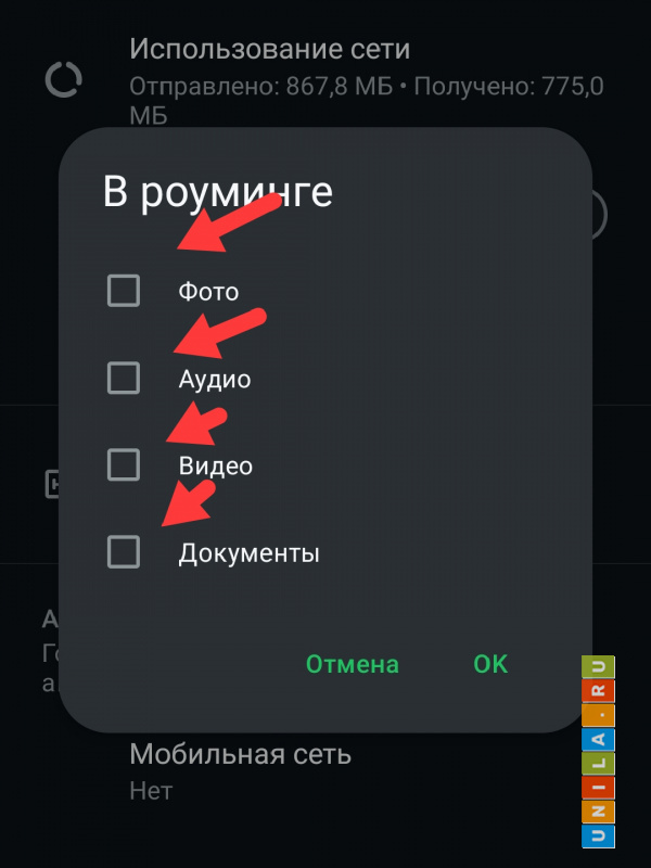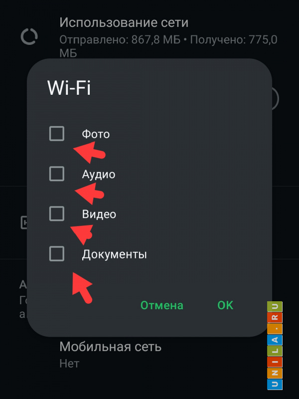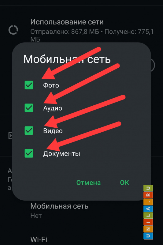 Уберите галочки и нажмите «ок». Это значит, что файлы не будут скачиваться автоматически, когда вы используете интернет от сим-карты