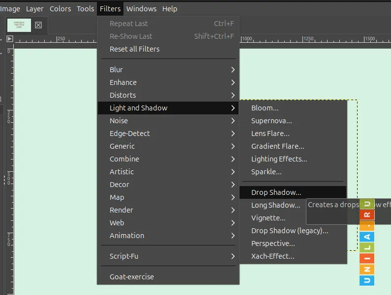 Откройте пункты меню Filters - Light and Shadow - Drop Shadow