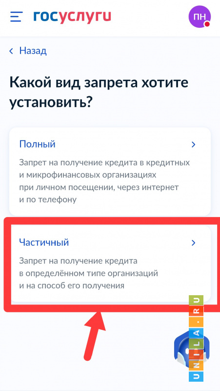 На Госуслугах можно установить полный запрет на оформление кредитов, как для банков так и для микрокредитных организаций или можно установить частичный запрет.