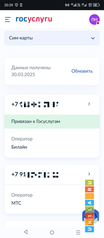 Здесь вы можете видеть все сим-карты, которые зарегистрированы на ваши паспортные данные