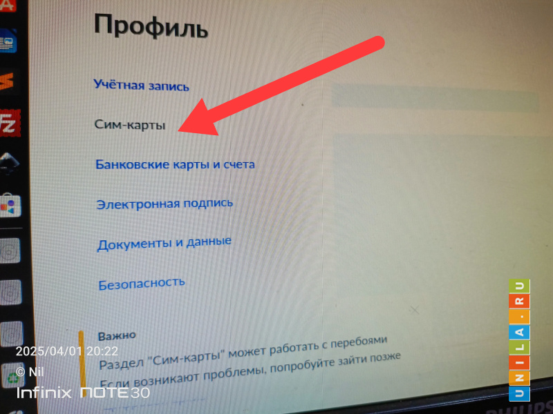 На мобильном нужно кликнуть по пункту «учётная запись» и в раскрывшемся списке можно будет выбрать «симкарты»