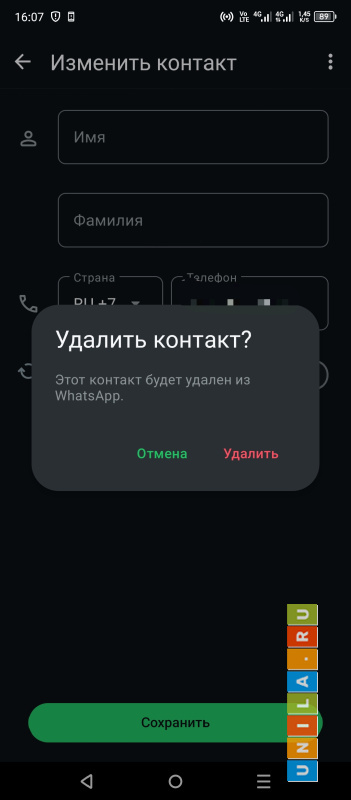 Долго не мог найти, как удалить контакт из WhatsApp. Безымянный контакт был добавлен по ошибке в список контактов не на телефоне, а внутри самого приложения WhatsApp. И отображался в списках контактов при создании нового чата. Чтобы удалить такой контакт нужно преодолеть целый квест, но это возможно. Вот как это делается в мобильном приложении на Андроиде.
