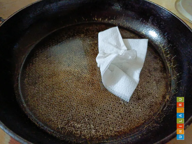 Коричневый слой который прилип к сковороде без пергамента и который снимается с низа бисквита можно подсушить, измельчить и использовать для посылки торта вместе с орехами, тёртым шоколадом