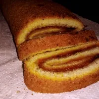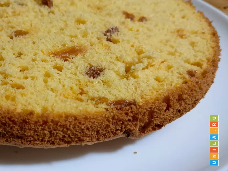 Так выглядит испечённый бисквит в разрезе, порезанный на два коржа