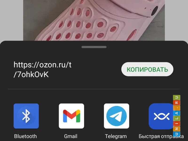 Чтобы поделиться в другом приложении, выберите приложение из списка (синие стрелки), чтобы отправить через сайт в браузере, скопируйте (красная стрелка) и потом вставьте на нужной странице
