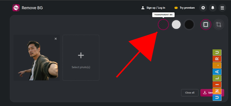 Можно выбрать фон - белый, чёрный или прозрачный. Если планируете накладывать фото на другое фоновое изображение, выбирайте прозрачный