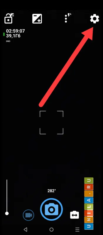 Вариант с приложением Open Camera. Открыть камеру и нажать на «настройки»