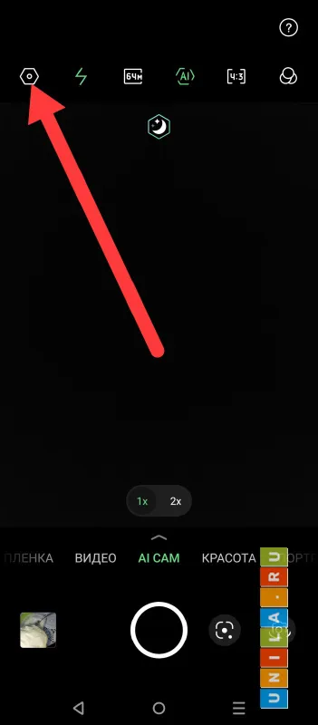 Камера на Infinix. Откройте камеру и нажмите на значок «настройки»