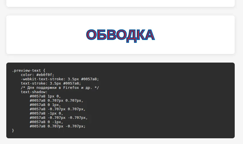 Этот конструктор обводки для текста позволяет создать обводку для текста в режиме визуализации и без знания css правил.